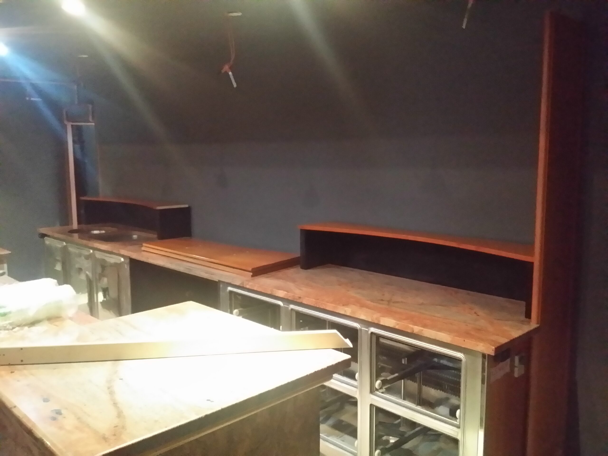 La due mensole riciclate sono asciutte e pronte a prendere posto sul piano dietro al banco del bar.
